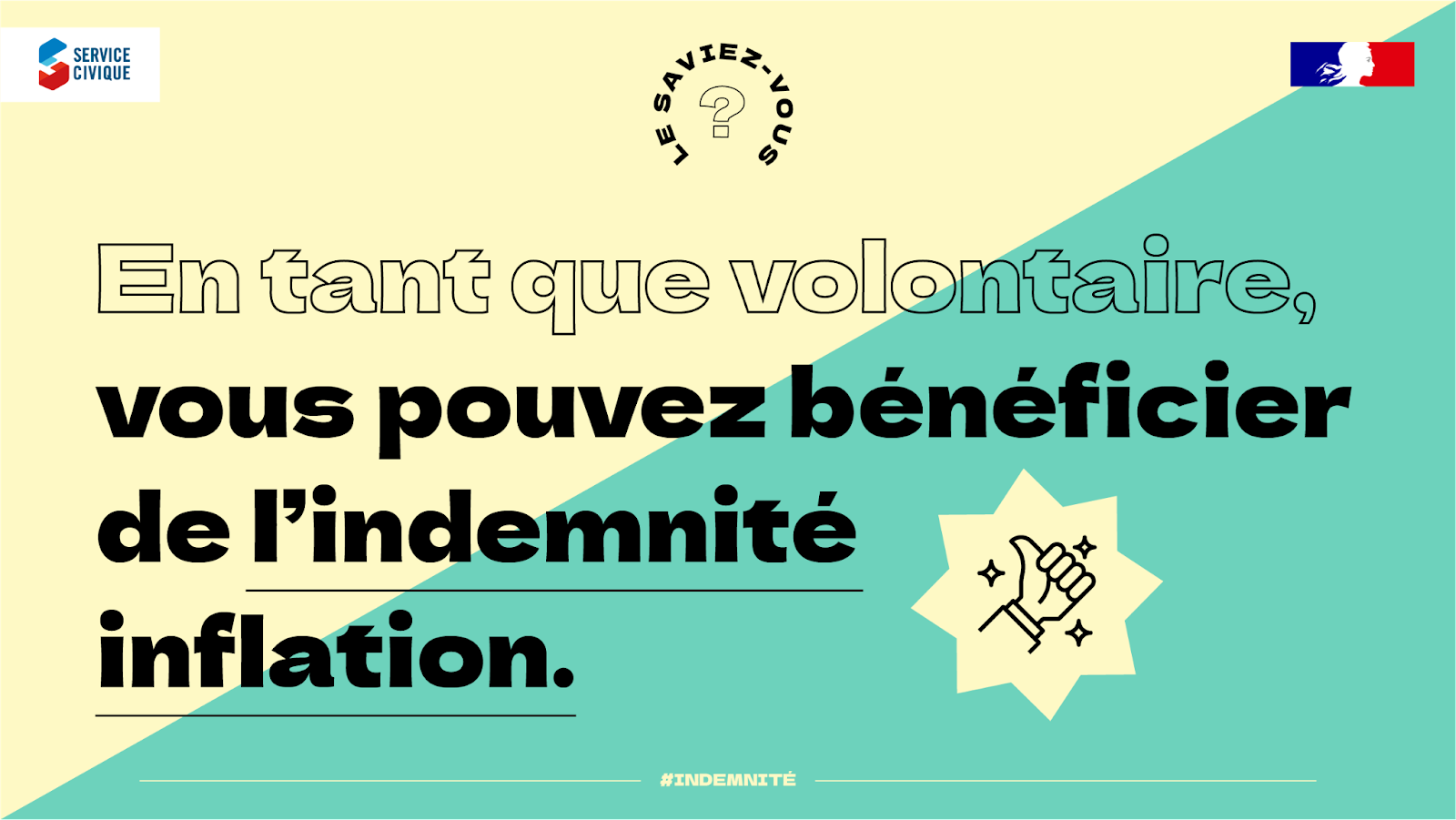 Les volontaires en mission de Service Civique sont bénéficiaires de l’indemnité inflation.